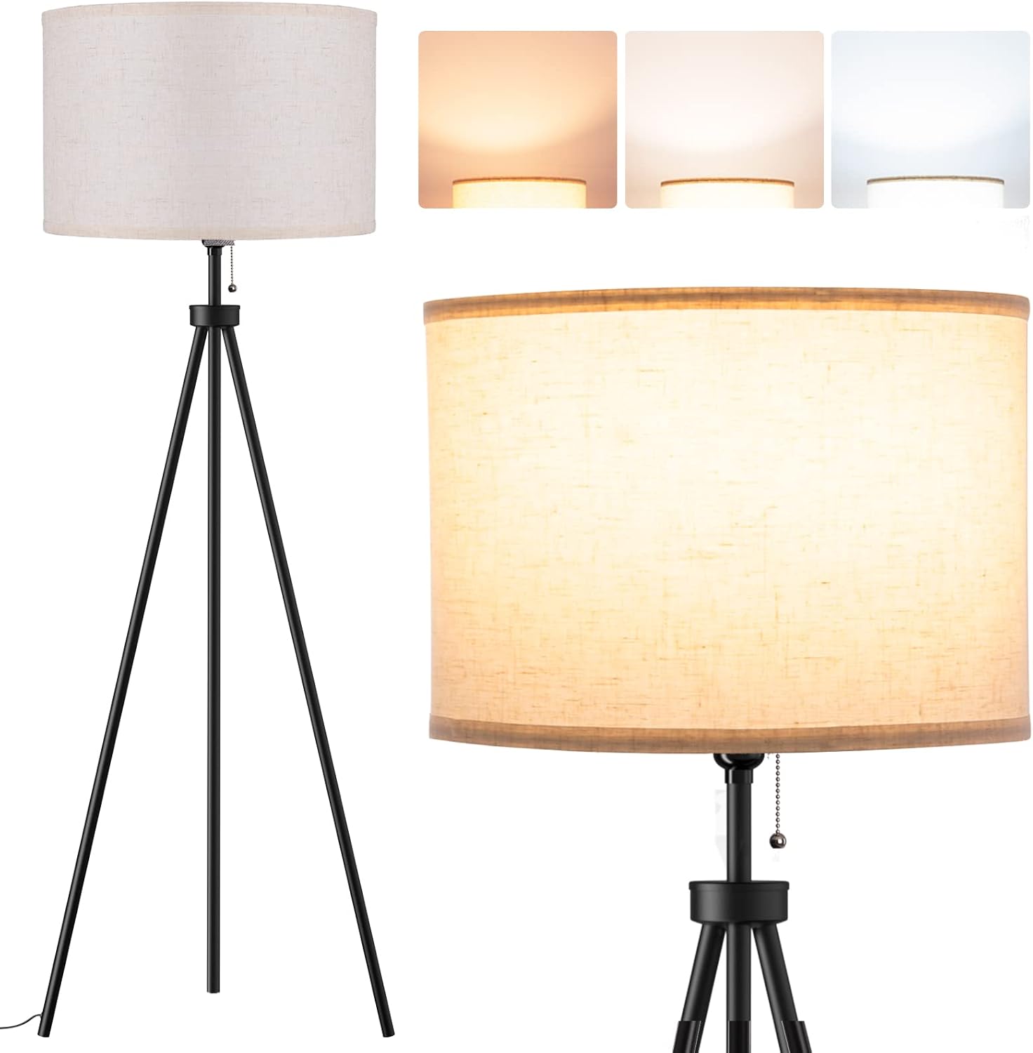 The three-legged tripod design brings a mid-century modern vibe that works in contemporary and traditional spaces alike. Natural wood legs contrast beautifully with the white fabric drum shade, creating visual interest without overwhelming your existing furniture.